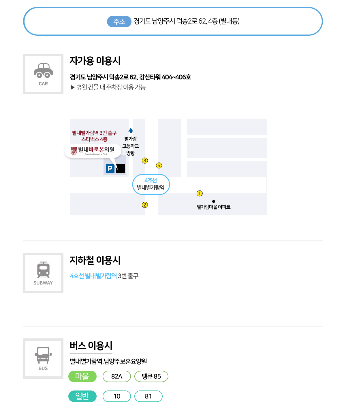 별내바로본의원으로 오시는 길과 주차안내입니다.