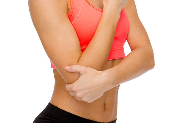▶ 팔꿈치 근육이 손상되면서 팔꿈치 관절 통증, 팔꿈치 바깥쪽에서 손목까지 연결된 부위에 통증을 느낍니다.